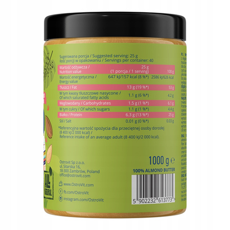 OstroVit 100% Almond Butter 1000 g - Smooth