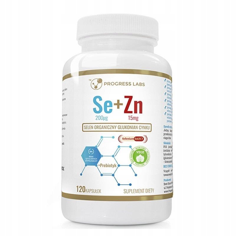 The perfect combination of selenium and zinc from PROGRESS LABS is a composition that supports the work of many systems in the human body. Selenium and zinc improve the condition of hair, skin and nails. It supports the proper functioning of the immune system, and also has a beneficial effect on concentration, memory and eyesight. In addition, the product contains the prebiotic FOS Actilight® (fructooligosaccharides) and an exogenous amino acid.
