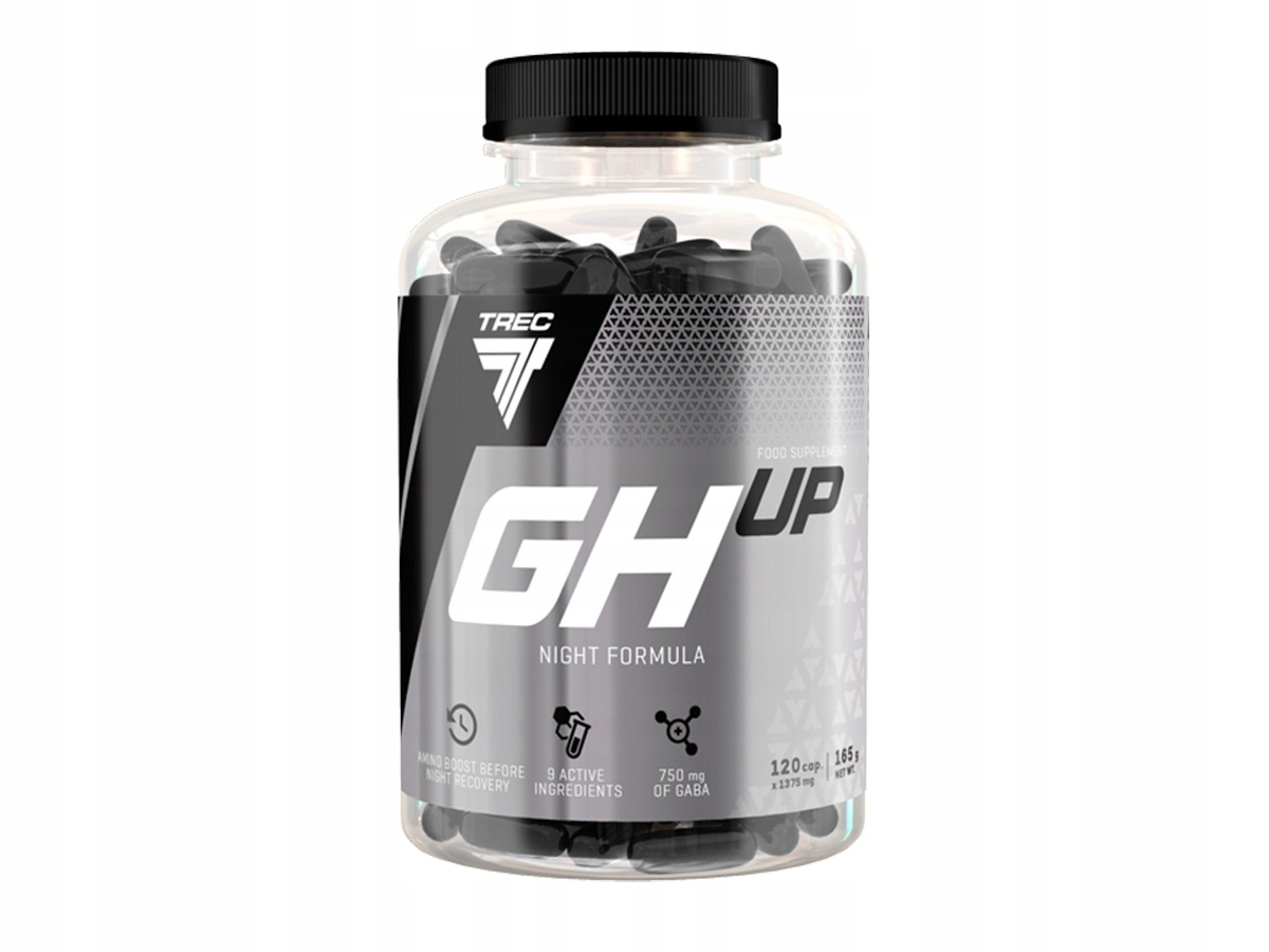 TREC GH UP to kompozycja form aminokwasów, które wchodzą w skład łańcucha polipeptydowego somatotropiny. GH UP zawiera L-argininę, L-ornitynę i L-lizynę oraz jabłczan cytruliny. Produkt uzupełniono także o kwas gamma-aminomasłowy, L-tryptofan, L-teaninę oraz L-glicynę. GH UP to produkt polecany jako środek uzupełniający aminokwasy przed okresem nocnej regeneracji.