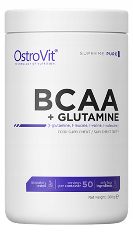 OstroVit BCAA + Glutamine is an advanced dietary supplement for physically active people, consisting of three branched chain amino acids, which are: leucine, valine, isoleucine, in the most favorable ratio of 2:1:1, and extremely important glutamine. Ideal micronization, bioavailability and good solubility of the product were dictated by high consumer requirements. BCAA (Branched Chains Amino Acids) are branched chain amino acids whose name results from an extensive side chain in its chemical structure. They belong to the group of essential amino acids, i.e. essential in our diet, because our body cannot produce them on its own. They are an inseparable element of the synthesis of most proteins, and over 30% of our muscles consist of BCAAs. There is no doubt that the existence of this preparation in our diet is of fundamental importance. Looking not only at health, but also building musculature, regeneration after hard training and reduction of body fat. Glutamine is an organic chemical compound from the group of endogenous amino acids. It is characterized by many biological functions, such as a nitrogen transporter, acting as a precursor to the synthesis of glutathione or nucleotides. It is one of the substrates in the process of gluconeogenesis. BCAA supply should be increased especially in people who train hard. With the increase in physical activity, the demand for essential amino acids increases.