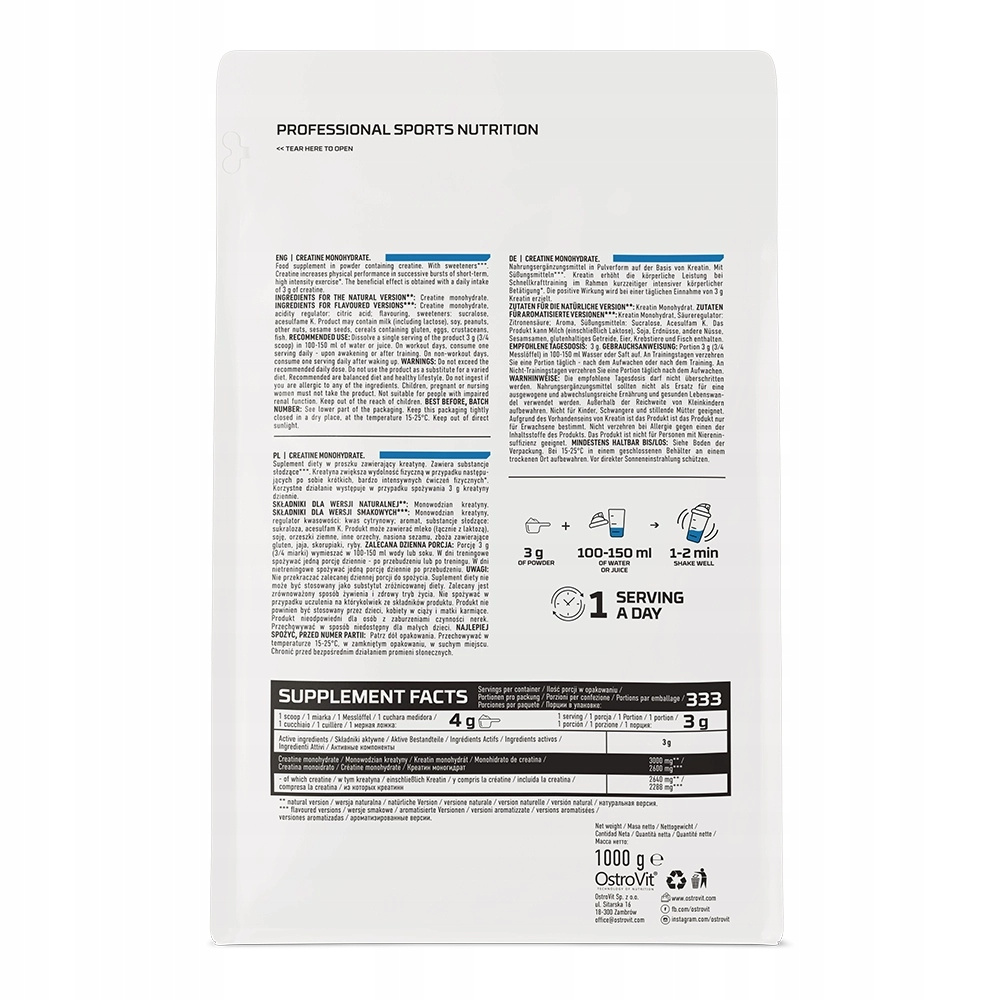 OstroVit Supreme Pure Creatine Monohydrate is a top-class single-component creatine monohydrate supplement with an excellent pharmaceutical level of micronization.
