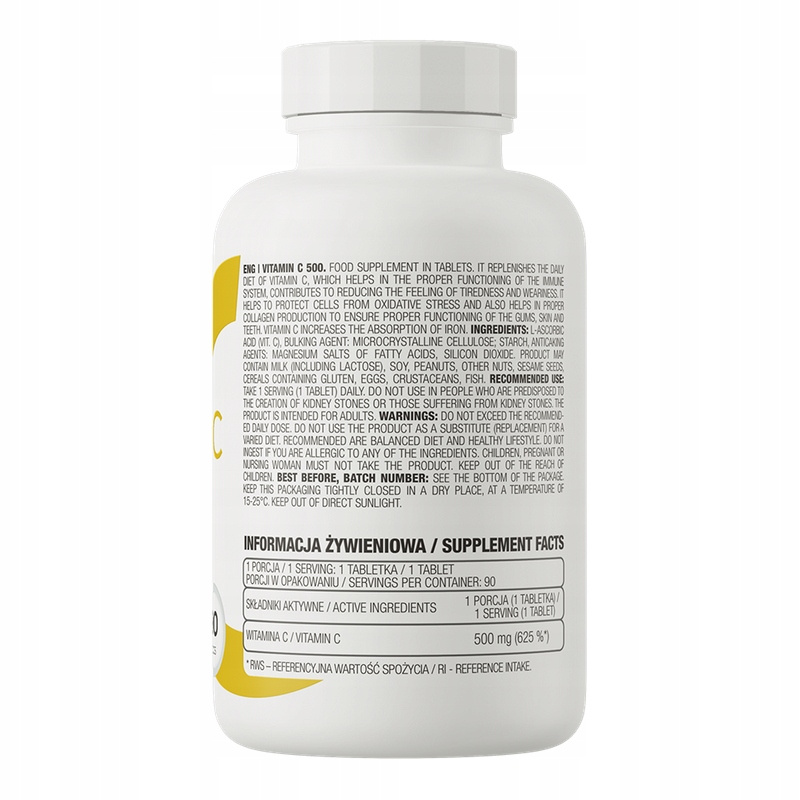 OstroVit Vitamin C 500 mg is a high-quality dietary supplement that is a source of L-ascorbic acid. This preparation is available in the form of easy-to-swallow tablets, created for athletes and people distinguished by an increased demand for vitamin C.