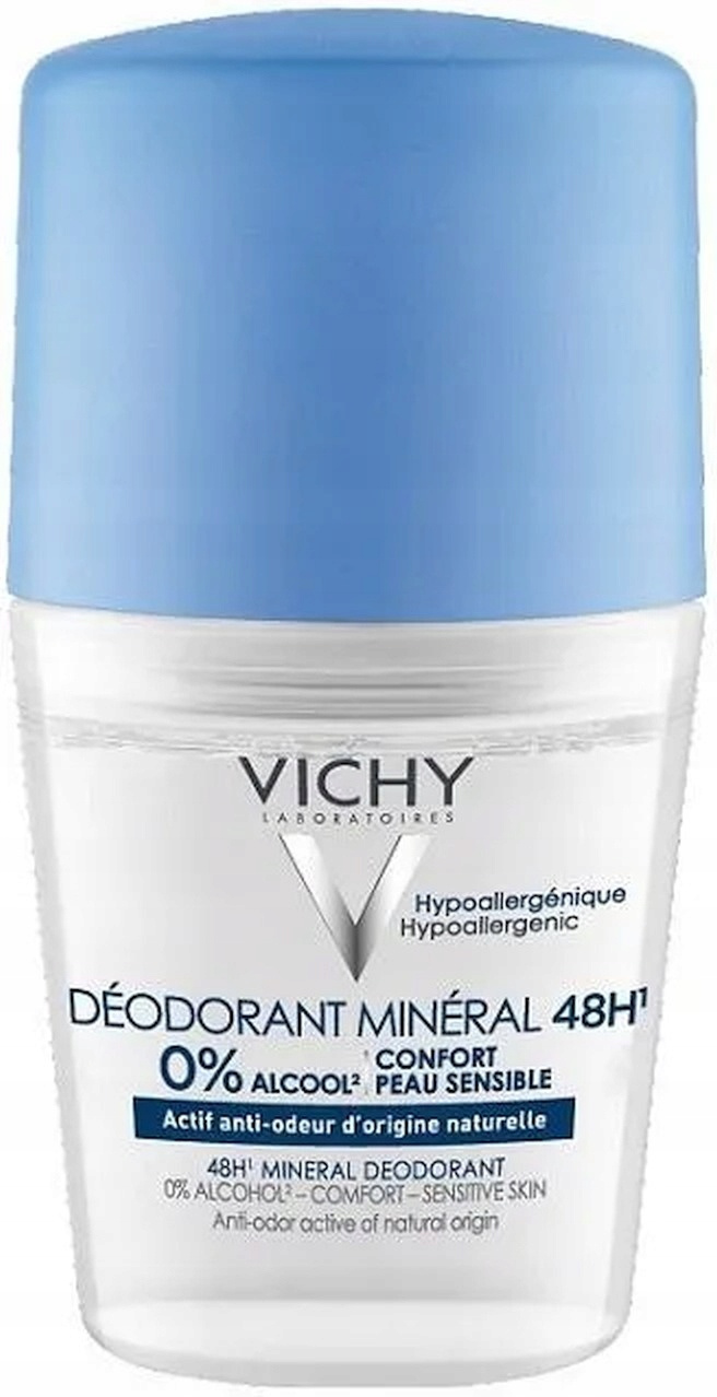 Stay protected and fresh for up to 48 hours with this aluminum-free quick-drying roll-on deodorant. Formula suitable for men and women of all ages, it adapts to all skin types, including sensitive skin. Free from aluminum salt and 0% alcohol *. The deodorant formula is a combination of zinc gluconate, 15 minerals with Vichy thermal water and soothing provitamin B5 for effective protection against unpleasant odors. Hypoallergenic formula. Clinically and dermatologically tested .